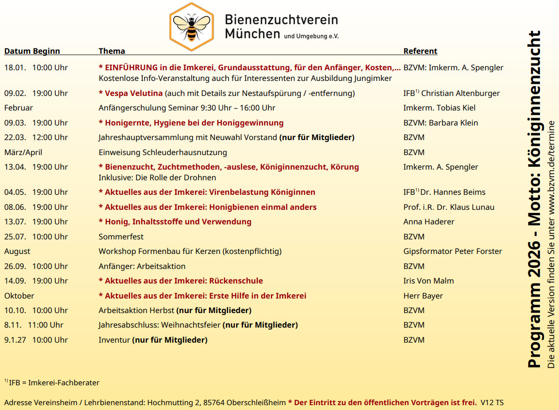 Im Kalender finden Sie unsere Termine und Termine aus unserer Umgebung, bzw. zu Messen und interessanten Veranstaltungen für Imkerinnen und Imker.